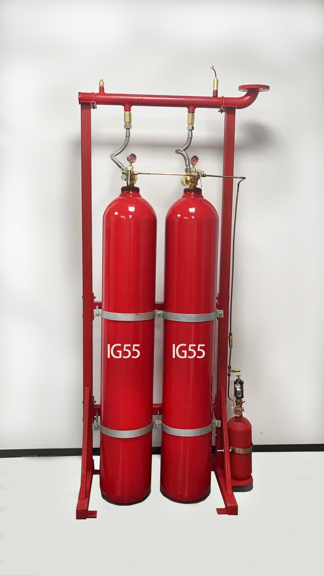 Η αποθήκευση του IG-55 είναι παρόμοια με εκείνη του συμπιεσμένου αερίου, όπου περιέχεται σε φιάλες υψηλής πίεσης.Το σύστημα IG-55 είναι σχεδιασμένο να λειτουργεί σε πίεση 30MPa., επιτρέποντάς μας να επιτύχουμε αποτελεσματική χρήση του χώρου αποθήκευσης.