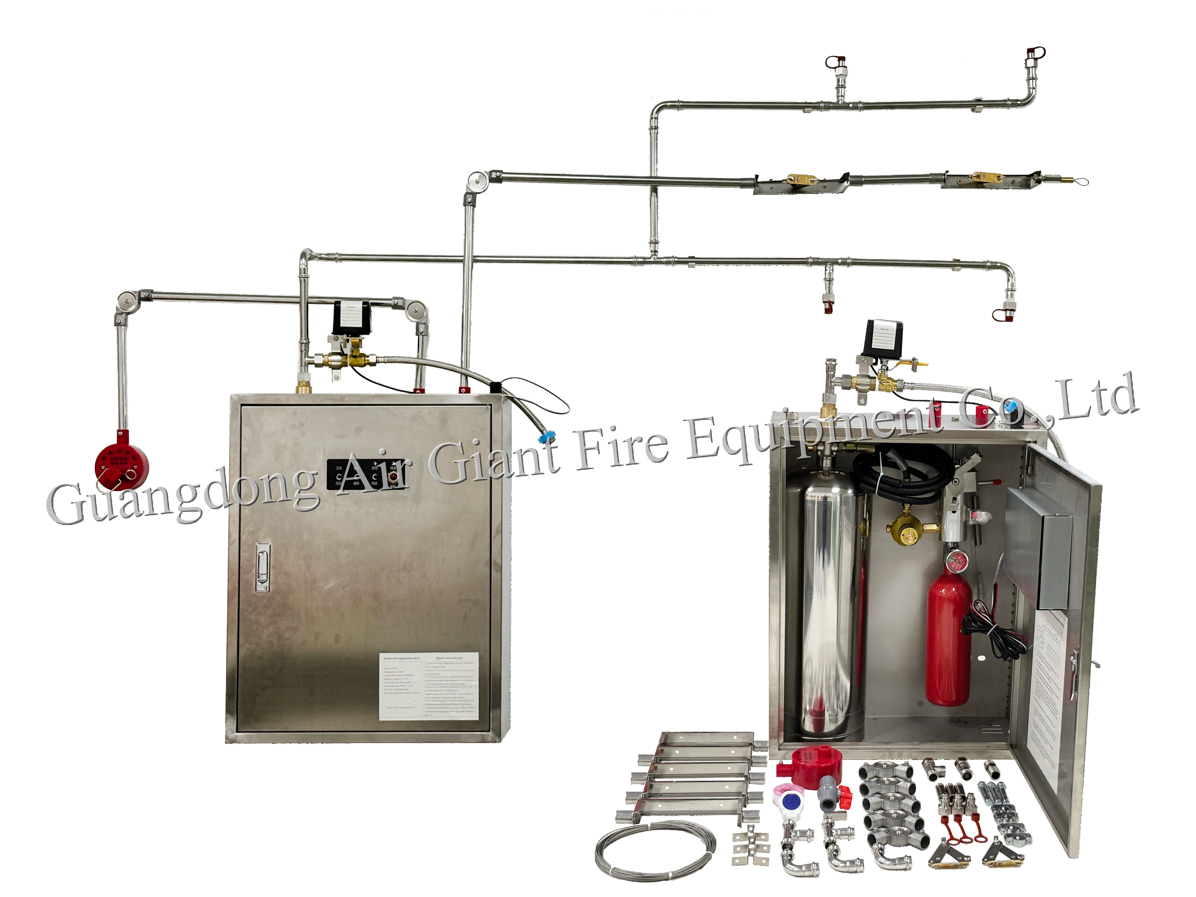 Η συσκευή πυρόσβεσης εξοπλισμού κουζίνας είναι ένα πλήρες σύνολο συσκευών εγκατεστημένων σε περιβάλλον υψηλής υγρασίας και θερμότητας, όπως βιομηχανικές κουζίνες, εμπορικές κουζίνες και πολιτικές κουζίνες,Συμπεριλαμβανομένων: