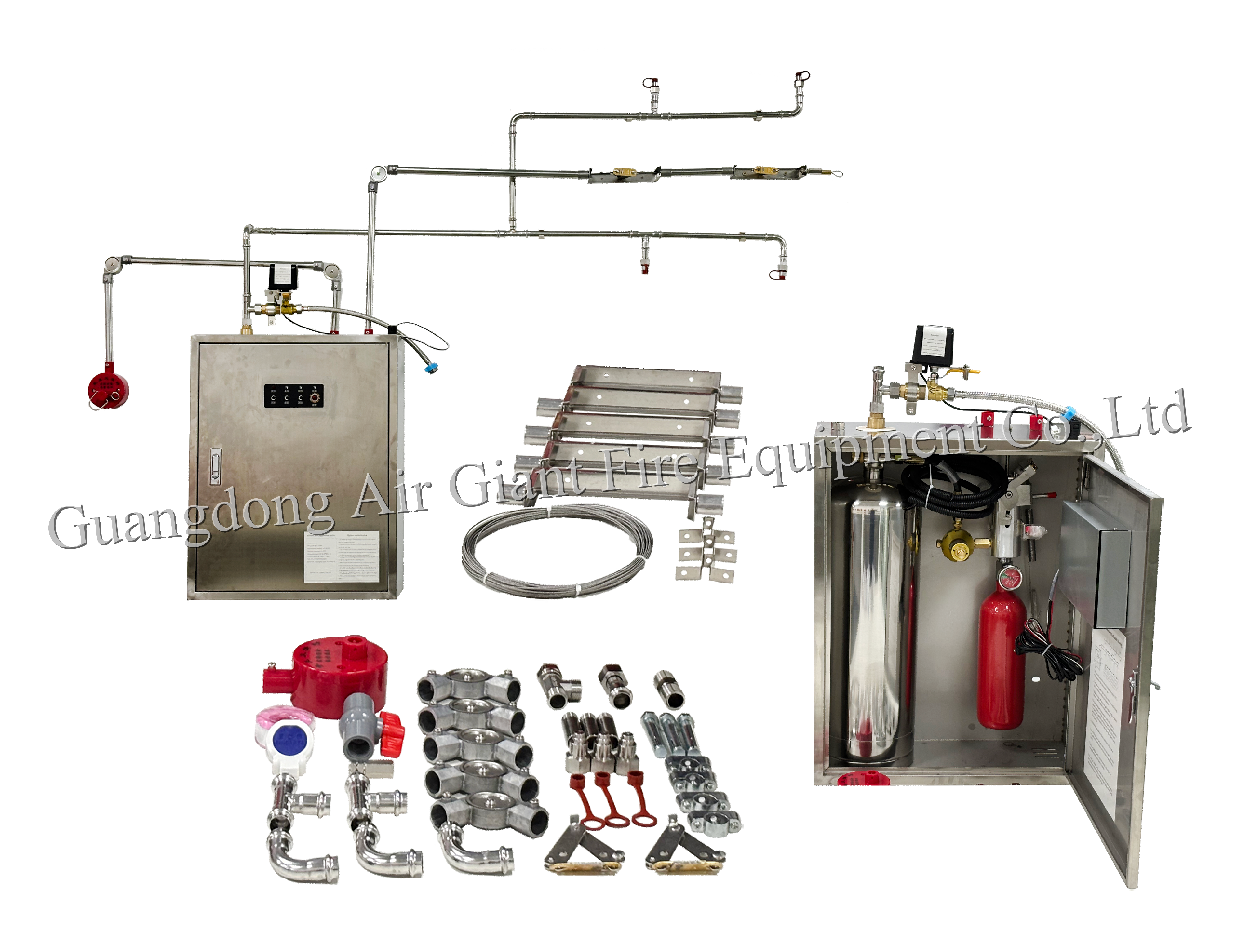 Εξοπλισμός κουζίνας Η συσκευή πυρόσβεσης χρησιμοποιείται κυρίως στους ακόλουθους χώρους: ξενοδοχείο, κουζίνα εστιατορίου, κέντρο εστιατορίου του σταδίου, μεγάλο/μέσο/μικρό εστιατόριο, εστιατόριο γρήγορου φαγητού,το κέντρο εστίασης του αεροδρομίου, η κουζίνα του γραφείου και του νοσοκομείου, το μεγάλο εστιατόριο του κτιρίου γραφείων, η κουζίνα των βιομηχανικών και μεταλλευτικών επιχειρήσεων, η καντίνα του πανεπιστημίου κλπ.